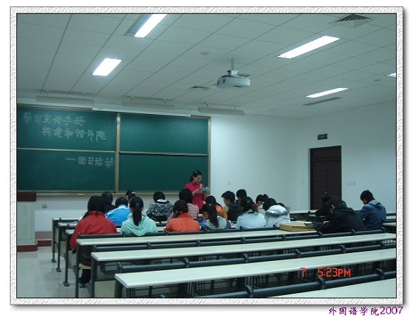 11月8日晚,外国语学院2007级13130701班在班长和团支部书记的带领下自发组织名为“学习宣传手册,构建和谐学院”的主题班会,为本科教学评估工作认真准备。
