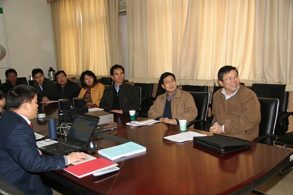 校党委副书记赵平、杨蜀康、副校长孙逢春和迎评准备工作小组成员及评估办工作人员一行听取工会汇报。
