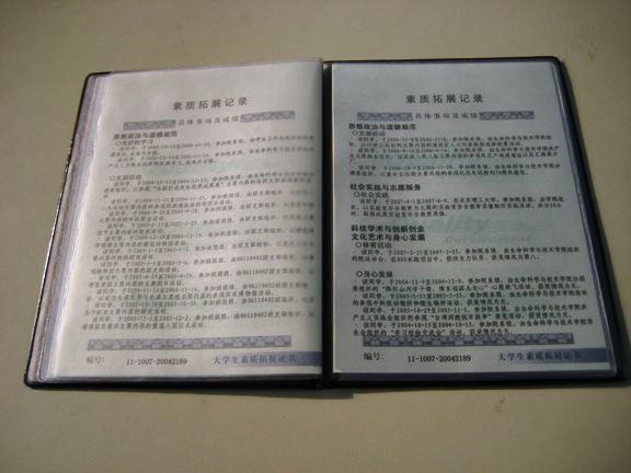 《大学生素质拓展证书》由团中央、教育部、全国学联统一格式、统一印刷要求,通过对大学生在校期间拓展自身综合素质的重要经历和主要成绩的客观记载,来引导大学生完善自身素质,建立对大学生素质拓展的评价和社会认同机制。证书内容共分“思想政治与道德素养”、“社会实践与志愿服务”、“科技学术与创新创业”、“文体艺术与身心发展”、“社团活动与社会工作”、“技能培训及其它”6个栏目。每本证书设定一个全国唯一的编码,由省(区、市)代码、大学代码、学生学号组成。在证书内容填写、鉴定、认证等方面建立了一套完整的机制和办法,确保《证书》的客观真实性和权威性。