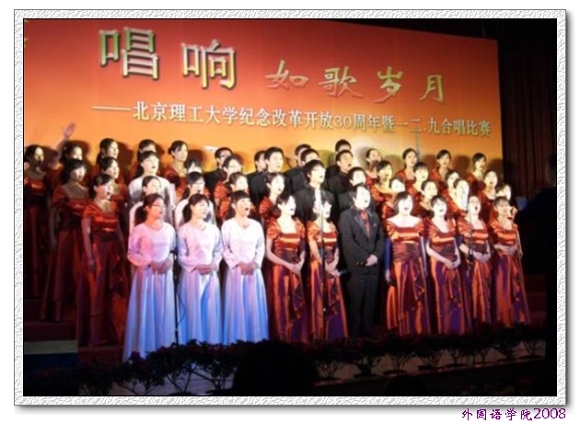 2008年12月7日晚,太阳城app纪念改革开放30周年暨一二.九合唱比赛在中心教学楼一层报告厅隆重举行。来自全校各个学院的13支合唱队同台表演,气氛热烈。经过激烈角逐,我院合唱队以优秀的表现获得三等奖,成绩在13支合唱队中名列第五,展现了我院学生的良好精神风貌和综合素质。