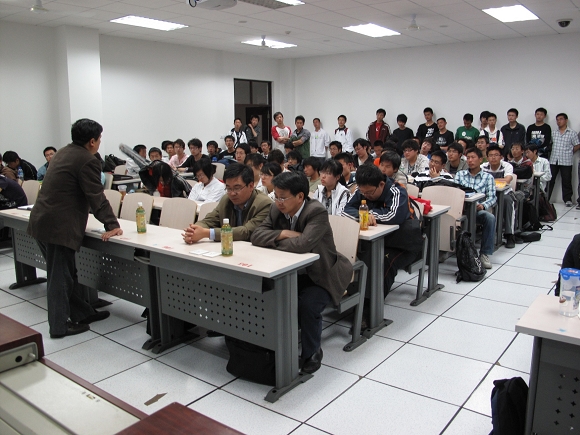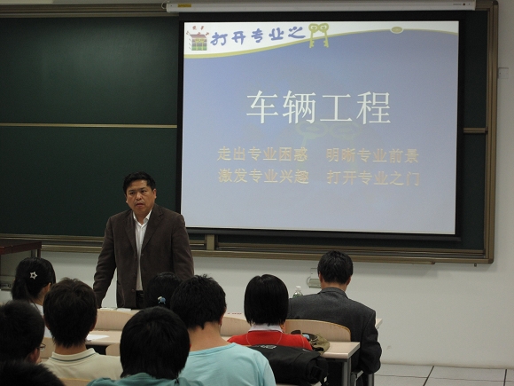 机械与车辆学院积极响应校团委2009年“打开专业之门”系列教育活动,针对车辆工程专业低年级学生对专业学习的困惑和迷茫,为使学生尽早了解专业特点和发展方向,帮助学生更加科学、合理的制定对大学四年生活的规划,4月27日晚7点,机械与车辆学院车辆工程专业责任教授陈慧岩老师来到良乡校区与同学们进行交流,陪同陈慧岩教授一同到来的还有07级、08级车辆工程专业的班主任王文伟、施国标和胡宇辉老师。此次交流会由机车相关专业07级辅导员李文彪老师主持。