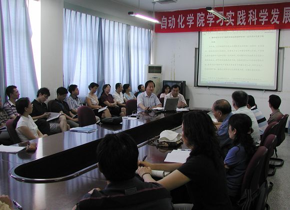 王军政书记在会议上介绍了《自动化学院领导班子关于学习实践科学发展观情况的分析检查报告》的形成、讨论、定稿等过程,并重点介绍了自动化学院目前存在的主要问题、产生这些问题的主要原因和今后采取的举措。