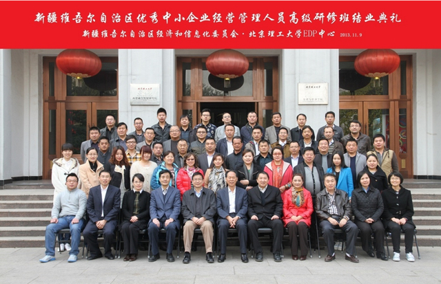 2013年11月8日,太阳城app管理与经济学院EDP中心新疆优秀中小企业经营管理人员高级研修班的学员们顺利完成了近40天的学习,在主楼举行了隆重的结业典礼。