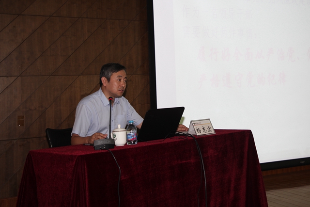 最后,杨志宏要求每一位领导干部要做到知敬畏、存戒惧、守底线,认真履行好全面从严治党和党风廉政建设责任,同时,他还鼓励各级党员干部要放下包袱、轻装上阵,学校纪委将坚持严管和厚爱结合、激励和约束并重的工作方针,在实际工作中会把在推进改革中因缺乏经验、先行先试出现的失误和错误,同明知故犯的违纪违法行为区分开来;把上级尚无明确限制的探索性试验中的失误和错误,同上级明令禁止后依然我行我素的违纪违法行为区分开来;把为推动发展的无意过失,同为谋取私利的违纪违法行为区分开来,他希望学校各级党员干部要争当改革的促进派和实干家,做一名忠诚干净担当的好干部,为学校“双一流”建设作出更大贡献。