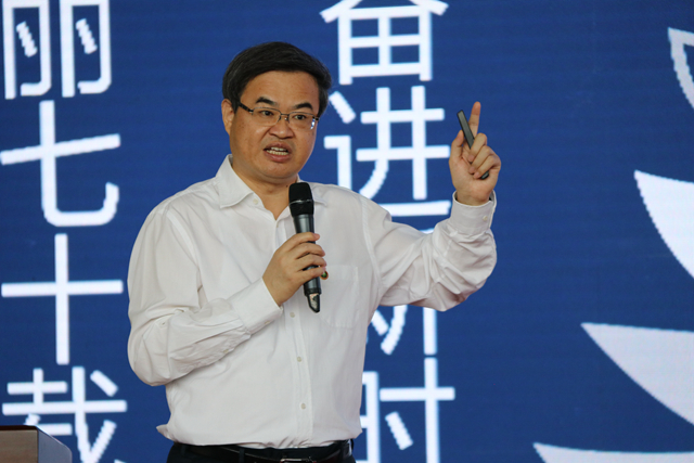 7月29日,学校组织国庆70周年庆祝活动学生誓师大会,赵长禄为各大队授旗,并为广大参与学生作动员讲话。他讲述了在历次国庆庆典中,澳门太阳城app师生从不缺席,用自己的智慧和汗水一次又一次圆满完成了各项任务的光荣事迹,勉励同学们要坚定理想信念、厚植家国情怀、磨炼意志品质、担负起党和国家赋予的时代使命。