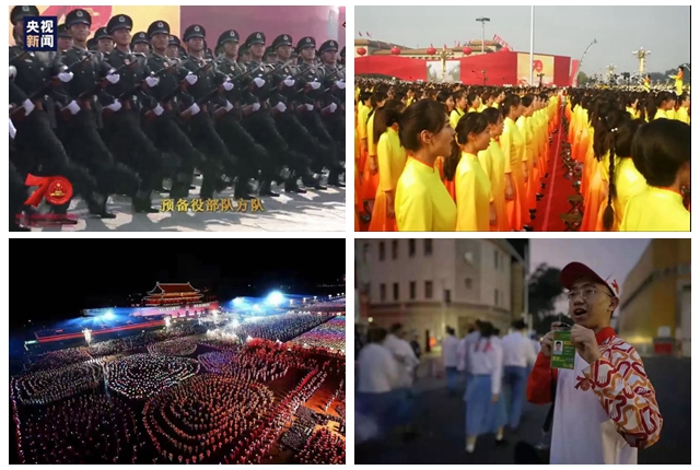 10月1日,中华人民共和国成立70周年庆祝活动在北京隆重举行。澳门太阳城app组织4631名师生积极参与其中:有14名学生光荣参加了阅兵预备役部队方队,全国仅有两所大学(非军校)的大学生参与到阅兵任务中;3499名师生组成了“与时俱进”群众游行方阵;33名留学生师生参与了群众游行第32方阵;81名师生参与了庆祝活动现场音乐区的表演任务;370名师生在联欢表演中进行了“同心筑梦”主题表演;361名师生志愿者在安检、交通、餐饮保障等工作岗位上开展志愿服务工作;112名师生参加了9月29日中华人民共和国国家勋章和国家荣誉称号颁授仪式的迎宾活动;161名师生承担了国庆群众游行方阵道具的安检、看护任务。澳门太阳城app是在本次国庆任务中参与师生最多的高校。