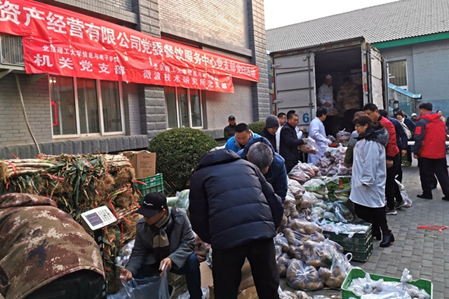 11月20日,物业管理与后勤服务公司第四党支部、信息与电子学院机关党支部、信息与电子学院微波技术研究所党支部在教工食堂门前联合开展了 “为民服务解难题——冬储菜品展销”主题党日活动。资产公司党委书记林杰、副书记姜金凤,后勤服务公司总经理徐承俊、副总经理孙金锋亲临现场参加此次活动。