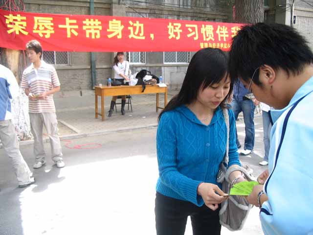 2006年4月24日,管理与经济学院共产主义学习会在京工食堂的对面举办了“荣辱卡带身边,好习惯伴我行”赠送“荣辱卡”活动。此次活动是管理与经济学院共产主义学习会响应中共中央关于宣传八荣八耻,树立社会主义荣辱观的号召,向全校师生发出倡议以八荣八耻规范自身言行的系列活动之一。漂亮的小卡片一发出便受到同学们的关注和喜爱,以贴心的方式向全校师生发出倡议,此次活动取得了良好的效果。