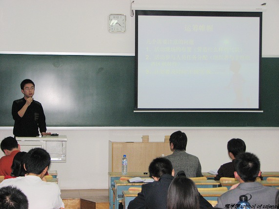 2006年11月15日(星期三)晚19:00,一年一度的理学院学生社团干部培训如期举行。一季季分团委的窗外青绿变成了澄黄,一代代理学院学生干部旧貌换新颜。当硕果累累的2005学年悄然走远,辉煌映在昨日,2006学年是崭新的白纸,充满了想象但依然任重道远。精诚团结、善行善思,理学院分团委周波、李明智、安泰、卢俊峰四位老师以他们个性的方式,以真切的体验依次向理学院新一届的学生社团干部讲授了一堂内容充实、形式活泼的培训课程,使大家受益匪浅。