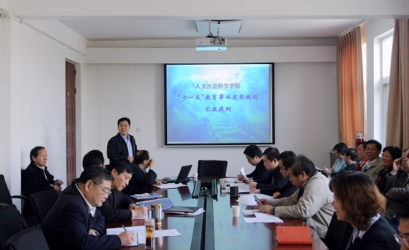 人文社会科学学院院长张红峻作了《人文社会科学学院“十一五”教育事业发展规划》的汇报。