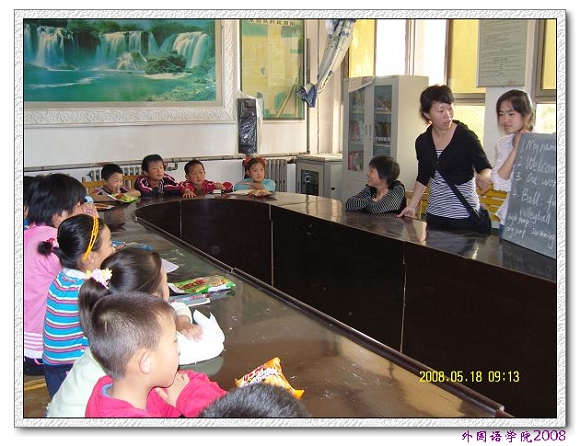 5月18日一早,同学们就驱车来到了位于北京顺义区的东沿头村,在一个简易的教室里,十八个农村孩子端正坐立,眼神澄澈,充满了对知识的渴望。这些孩子年龄跨度从7到15岁不等,其中有几个还是外来务工人员的孩子。同学们精心准备了适合孩子们接受的轻松易学的奥运英语,孩子们学习热情很高,并且对于不懂的问题积极发问,整个课堂气氛和谐欢乐。进行完英语宣讲后,同学代表将在学校募集来的图书赠给了孩子们并且和孩子们结成笔友约定互通信件。
