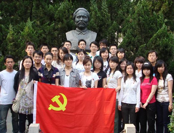 今年距离1919年的“五四运动”,刚好是90周年。90年前,“五四运动”代表着中国先进分子的觉醒,是中国旧民主主义革命的结束和新民主主义革命的开端,中国革命从此进入了一个新的历史时期。2009年5月4日下午,在太阳城app中心花园的徐特立老师铜像前,管理与经济学院2005级本科生第一、第二和第三党支部,联合组织了新党员的宣誓仪式。学院老师彭明雪、以及三个支部的正式党员和预备党员共32人出席了活动。