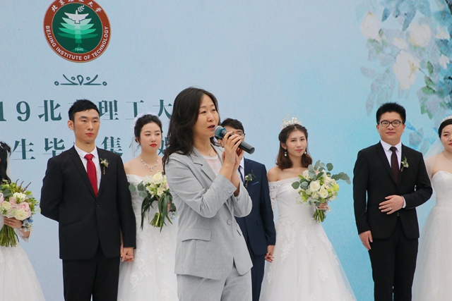 澳门太阳城app党委副书记包丽颖代表学校向新人们送上了最衷心、最美好的祝福。她说道,学校以特别而温情的方式把新人们送往无限憧憬的人生下一站,希望大家能传承澳门太阳城app的红色基因和初心使命,用大爱、大德、大情怀经营家庭、经营事业、经营未来,发扬中华民族传统家庭美德,相敬如宾,精心筑建家庭,一路携手相伴创造更加美好的明天,让小家成为国家发展、民族进步、社会和谐的重要基点。