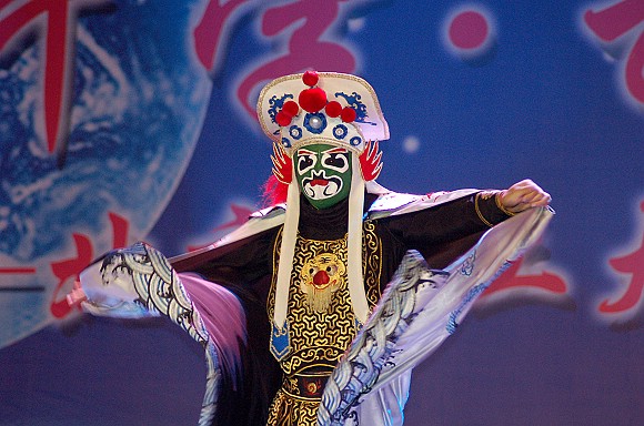 由北京河北梆子剧团张琦表演的川剧《变脸》变幻莫测。