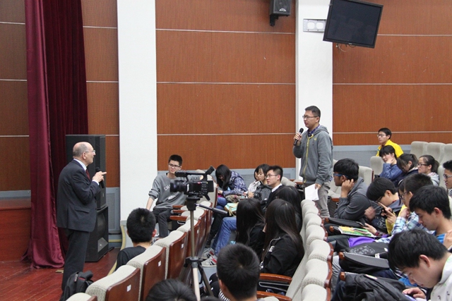 在本次“育材微讲堂”上,ZARKO教授分别从苏联的火箭发展历史、人类历史首位宇航员的选择、加加林的生平为人等三个方面进行了讲述。他首先提到了苏联在20世纪50年代火箭技术发展进程,科学家们设计了多种火箭模型并进行了反复的实验,将火箭的最大发射距离从短短的几十公里提高到了成百上千公里,为载人航天飞行奠定了坚实的基础;随后又详细地介绍了选择尤里·加加林作为首位宇航员的过程,还给同学们展示了多张加加林的珍贵照片,并讲述了照片背后的故事。在讲座的最后,教授耐心细致地回答了同学们的提问,获得了同学们的掌声。ZARKO教授如今已是古稀高龄,但在整个讲座过程中神采奕奕,尽显大师风范。材料学院向ZARKO教授赠送了本次“育材微讲堂”双语纪念海报,活动在轻松愉快的氛围之中顺利结束。
