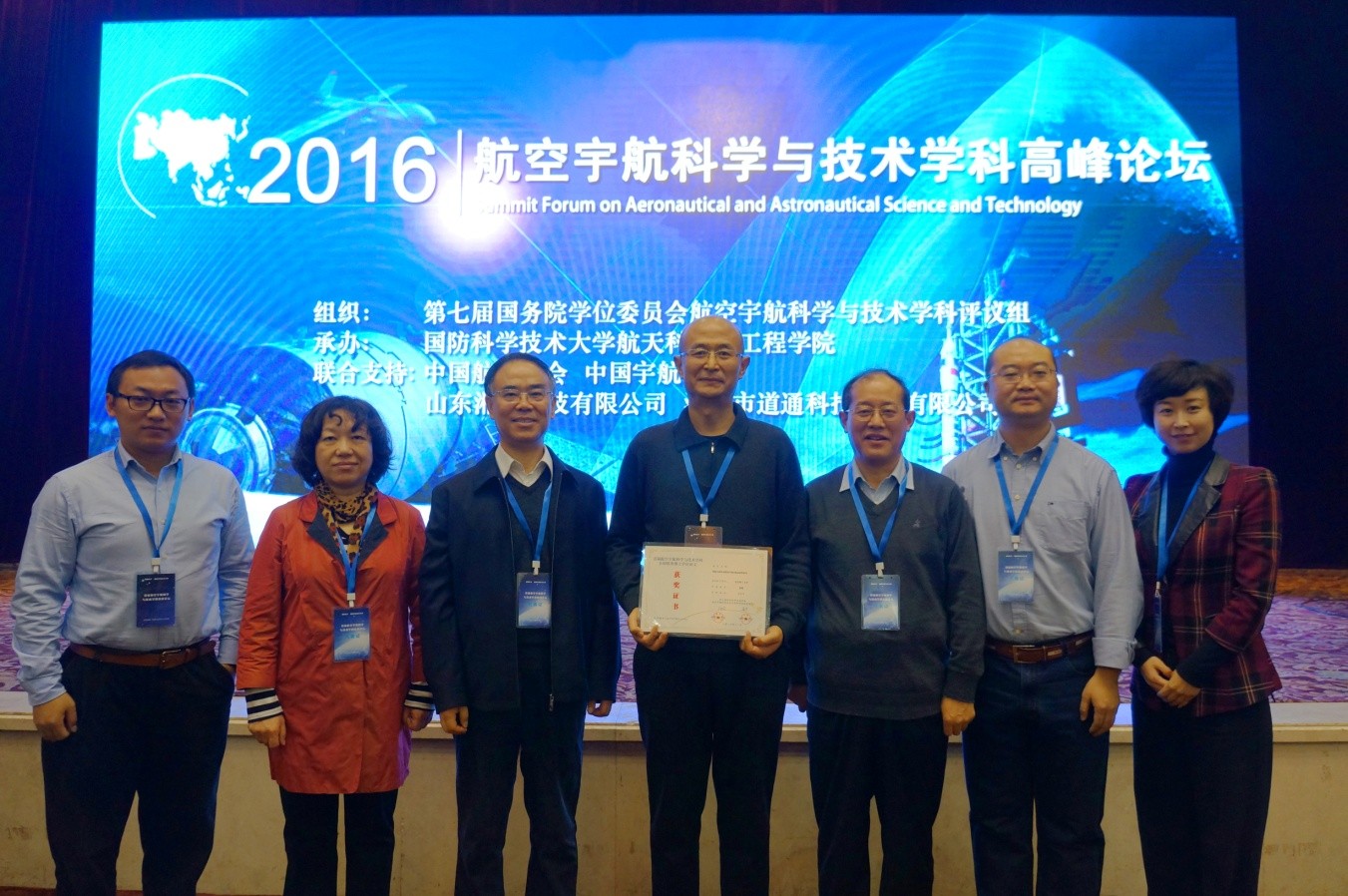 本届高峰论坛是由国务院学位委员会航空宇航科学与技术学科评议组发起组织,国防科大航天科学与工程学院具体承办。论坛设置了专题讲座、研讨交流、展览展示等相关活动。在本届高峰论坛上,颁发了首批航空宇航科学与技术学科全国优秀博士学位论文奖,该全国优秀博士学位论文评选范围为2011至2014三个学年度,我校宇航学院王宁飞教授指导的张峤获得2011年度全国优秀博士学位论文奖。