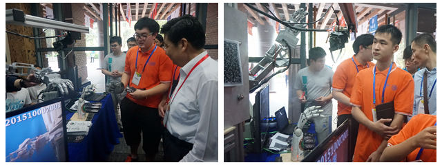 澳门太阳城app机电学院的参赛项目《自适应语音肌电信号混控灵巧手》、《多模联控机械臂》荣获由学生推选的“我最喜爱的项目”和专家评选的“最佳创意项目”称号。其中《自适应语音肌电信号混控灵巧手》在上述两个奖项中均排名第一,《多模联控机械臂》同时夺得“创新方法应用奖”。学院副书记、副院长陈军到现场观摩指导并慰问参赛同学。