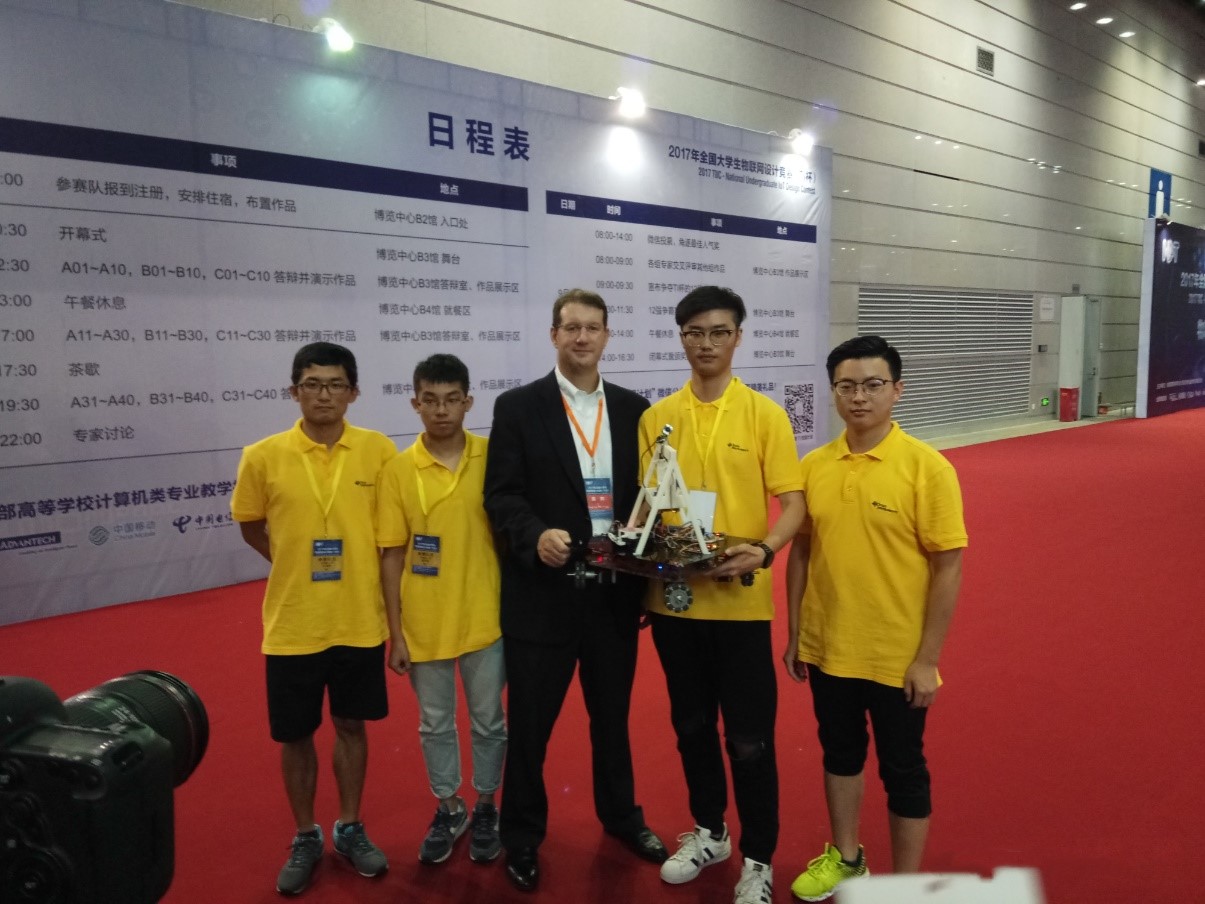 2017年全国大学生物联网设计竞赛(TI杯)全国总决赛于9月10—11日在江苏无锡太湖国际博览中心隆重举行,由澳门太阳城app计算机学院本科生王晓阳、杨沃佳、黄敏杰、朴泉宇组成的参赛队获得全国一等奖及最佳人气奖的第三名的优异成绩。自此,澳门太阳城app计算机学子2015年以来连续三年获得该项赛事一等奖。