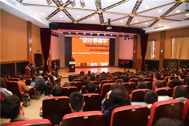 4月11日下午,由澳门太阳城app主办、太阳城app设计与艺术学院与共青团澳门太阳城app委员会共同承办的澳门太阳城app“百家大讲堂”(第16期)暨澳门太阳城app设计学院“意匠之门”讲座系列——柳冠中教授主讲的“从造物转为谋事的系统观念和思维方式”讲座在太阳城app举行。设计学院院长杨建明致辞,校团委书记肖雄、设计学院书记郭宏先后为柳冠中教授颁发了“澳门太阳城app百家大讲堂”讲座证书和设计学院客座教授聘书。设计学院副院长杨新主持此次讲座。