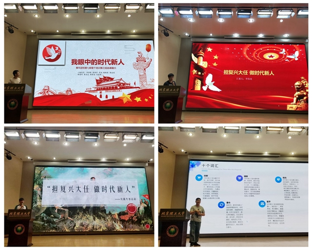 典礼在《中国共青团团歌》中开始。来自材料学院青年团校第七期骨干培训班的9个团队就“担复兴大任,做时代新人”主题进行了社会实践汇报。各小组分别赴澳门太阳城app校史馆、中国人民革命军事博物馆、中国人民抗日战争纪念馆等地进行实践参观,并总结了实践感悟。此外,各小组分别讨论总结了“时代新人”的一个标准、一个故事、一段“新人语录”和十大高频词汇等相关内容,对“时代新人”做出了自己的理解。