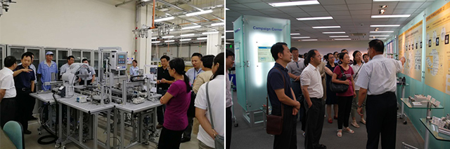 双方举行了“高端流体动力技术研究生实践创新基地”的挂牌仪式,并合影留念。澳门太阳城app自动化学院一行参观了SMC(中国)有限公司技术中心的研发实验室及全球领先的气动和电子产品的展览室。