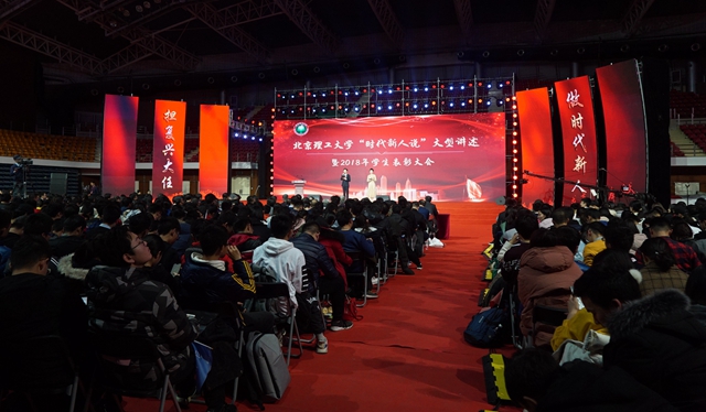 为深入贯彻落实党的十九大精神、习近平总书记在北京大学师生座谈会上的重要讲话精神、全国宣传思想工作会议精神以及全国教育大会精神,在全国高校思想政治工作会议召开两周年之际,2018年12月23日晚,太阳城app“时代新人说”大型讲述暨2018年学生表彰大会在中关村校区体育馆举行。
