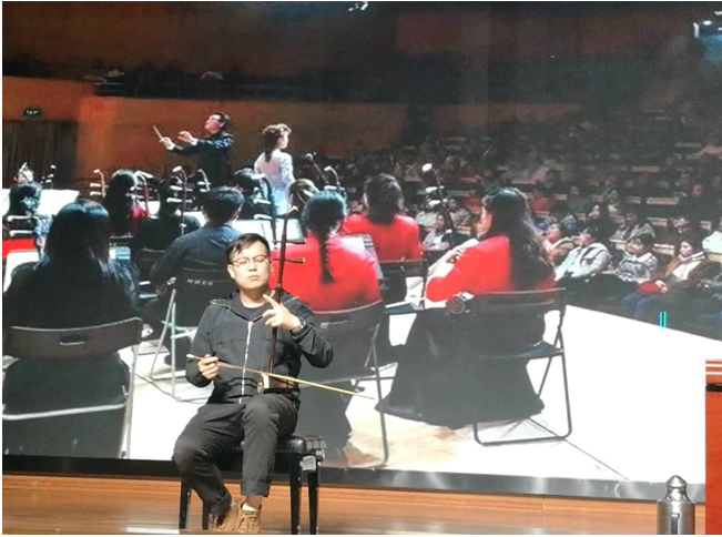 首都师范大学青年民族乐团原团长,二胡演奏者吴段现场演奏了“追梦红楼”组曲中《序曲》片段。他精湛的二胡演奏技艺,呈现出如泣如诉抑扬顿挫的音色音调,完美表达了剧情内涵,同学们深受震撼。明德书院社会科学试验班2018级陈巧颖激动的说:今天,我极其有幸能坐在台下,亲身去欣赏李刚教授及其团队所带来的《感悟经典,追梦红楼》的视听盛宴。从一开始李刚教授对红楼梦和作曲家王立平先生的介绍,到吴段老师现场演奏二胡,再到张宇璇老师倾情演唱红楼梦的经典曲目。无论是哪个都给我留下了不可磨灭的印象。到现在我还清晰地记得当二胡声响起时,那种直击我心灵的震撼和惊喜。从前二胡在我眼中就只是平淡无奇的乐器而已,是老人才拉的玩意,但今天,二胡在吴老师手下大焕光采,曲调抑扬顿挫,从开始的轻快再到最后的凄切,给我心灵重重一击。这是我们中华民族的民族乐器啊!只有它才能真正地完全演绎出红楼的真情实感,这是任何乐器都无法替代的。