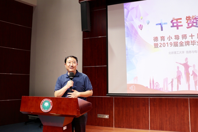 为深化德育工作内涵、树立青年学子典范,6月15日晚,澳门太阳城app信息与电子学院在良乡校区报告厅举行“十年赞歌”——德育小导师十周年庆典暨2019届金牌毕业生答辩会。优秀校友创新工场智慧医疗实验室负责人钱天翼(2004级本科)、中国科学院自动化研究所模式识别国家重点实验室助理研究员荣政(2006级本科),学校相关部处领导、学院领导、2019届德育小导师代表及2018级200余名学生代表参加本次活动。