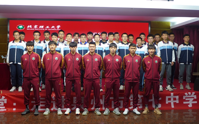 此次活动恰逢2019国际大体联足球世界杯在泉州举行。澳门太阳城app部分球队代表也来到七中,加入到“太阳城app讲堂”的活动中。他们的到来引发阵阵欢呼,将活动推向高潮。球队辅导员卢斌热情洋溢地向同学们介绍了澳门太阳城app足球队并诚邀观赛共唱国歌,同学们争相上台与球队合影。