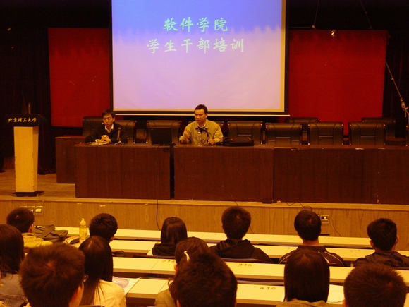 软件学院在加强学风建设的系列工作中,充分发动学生骨干的力量,以学生社团为载体,各项学生活动围绕学风建设这一重点。2006年10月24 日下午,软件学院全体学生干部在七号楼报告厅参加了学生干部培训大会。学院副书记、副院长陈旵明老师就“学生骨干在学风建设中如何发挥重要作用”给学生干部进行了培训。学院分团委老师也出席了大会。