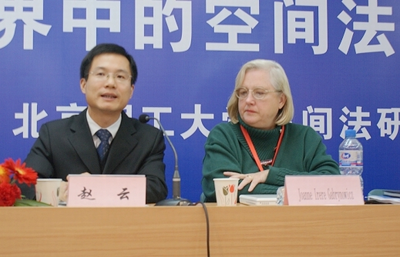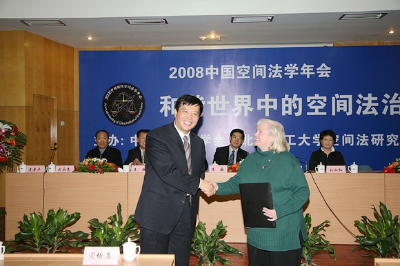 2008年12月20日,在2008中国空间法学年会暨“和谐世界中的空间法治”学术研讨会的开幕式上,美国密西西比大学法学院教授,国家遥感、航空与航天法中心主任Joanne Irene Gabrynowicz博士受聘为我校兼职教授,澳门太阳城app党委副书记、工会主席侯光明教授主持了聘任仪式,并向Joanne Irene Gabrynowicz博士颁发了兼职教授聘书和佩戴了太阳城app校徽。澳门太阳城app法学院教授、太阳城app空间法研究所所长李寿平博士介绍了Joanne Irene Gabrynowicz博士的简历和学术成就。
