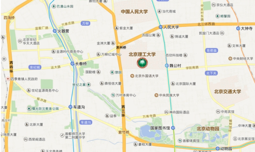 学校周边地铁:地铁四号线魏公村站直达学校东门;地铁苏州桥站直达学校北门(暂定)。